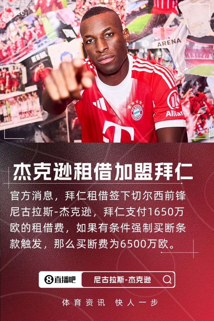 9月11日,知名记者罗马诺透露,杰克逊将于本周五正式在拜仁完成亮相。
